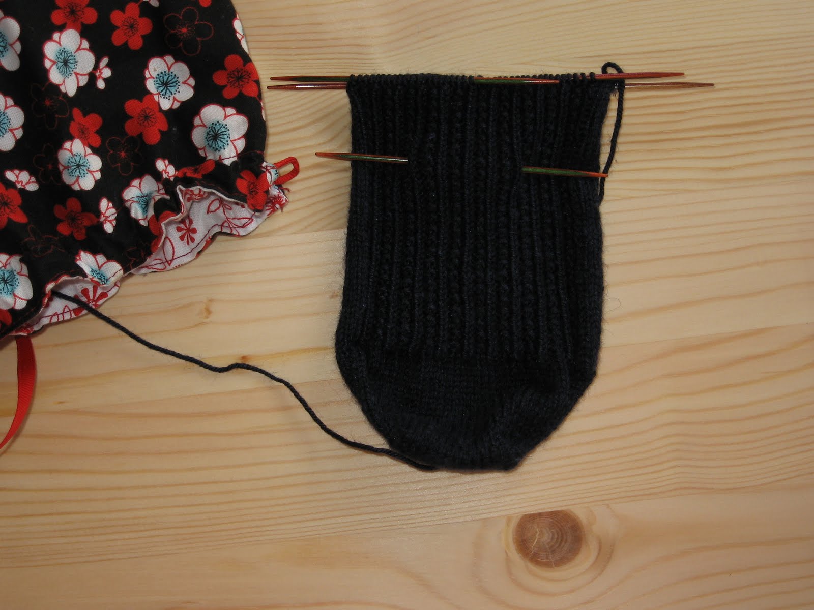 I gave one of the CMS talks today, so I didn't get in quite as much knitting as I usually do on Thursday afternoons. I still managed to finish the gusset and get halfway through turning the heel, though! It's so exciting when a sock (or any handmade item, really) starts to be recognizable as what it is going to be.